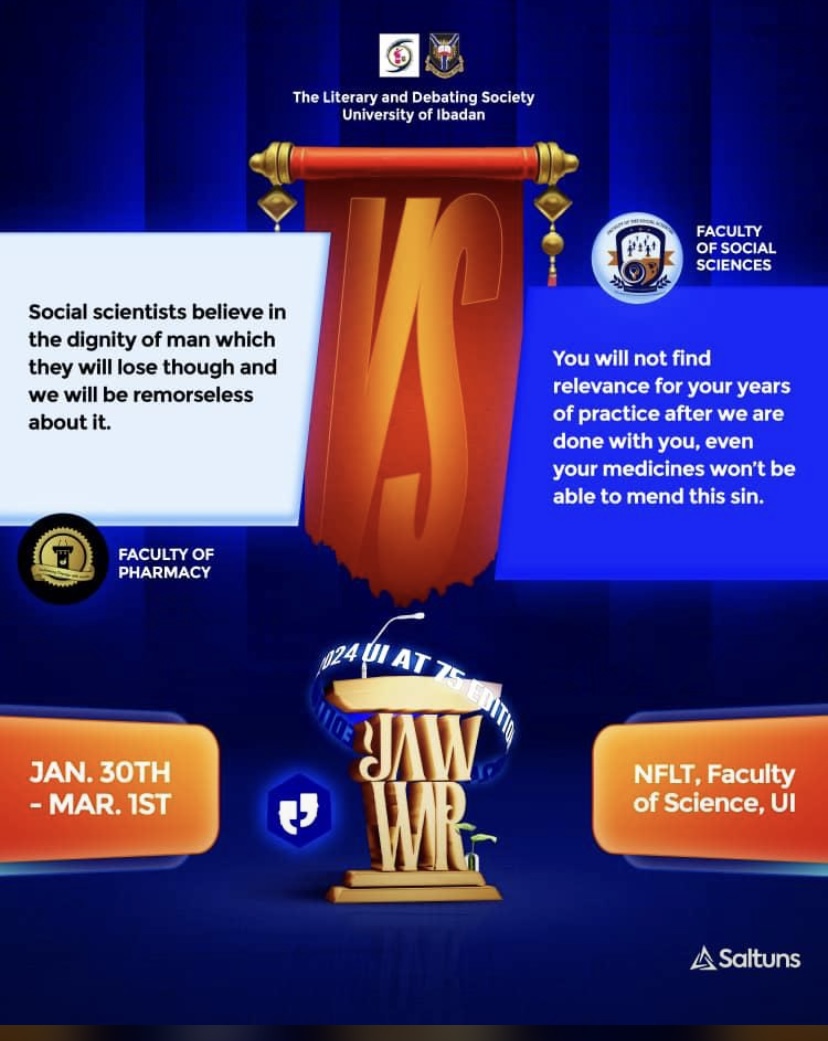The Jaw War Preliminary Faculty Round, hosted at The Faculty of Tech’s NFLT on February 2, 2024, and kicking off at 5:20 PM, offered an engrossing experience, captivating students from the University of Ibadan and beyond. The event commenced with introductions of the speakers, Time Keeper, and Judges, followed by an explanation of the debate rules.